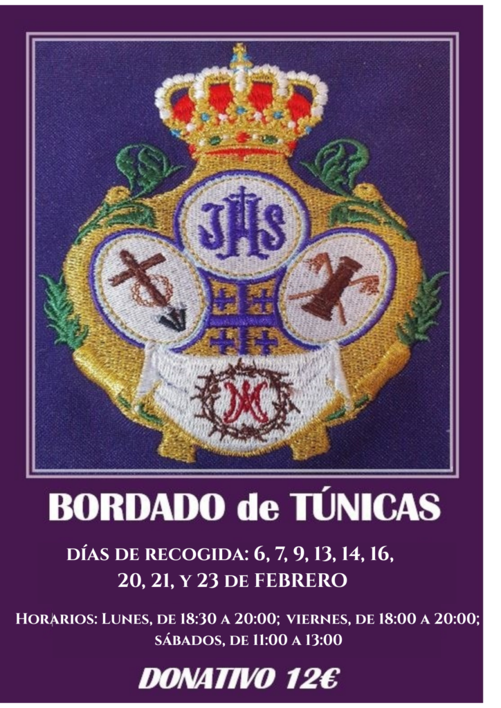 Como en cada Cuaresma, la hermandad pone a disposición de los archicofrades la posibilidad de bordar el escudo de la Archicofradía en las túnicas de nazarenos.