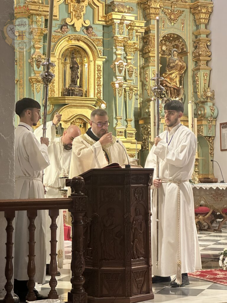 La Solemne Eucaristía estuvo presidida por el párroco y director espiritual, Rvdo. Sr. D. Felipe Manuel Gallego Casco, acompañado por el cuerpo de acólitos de la Archicofradía.