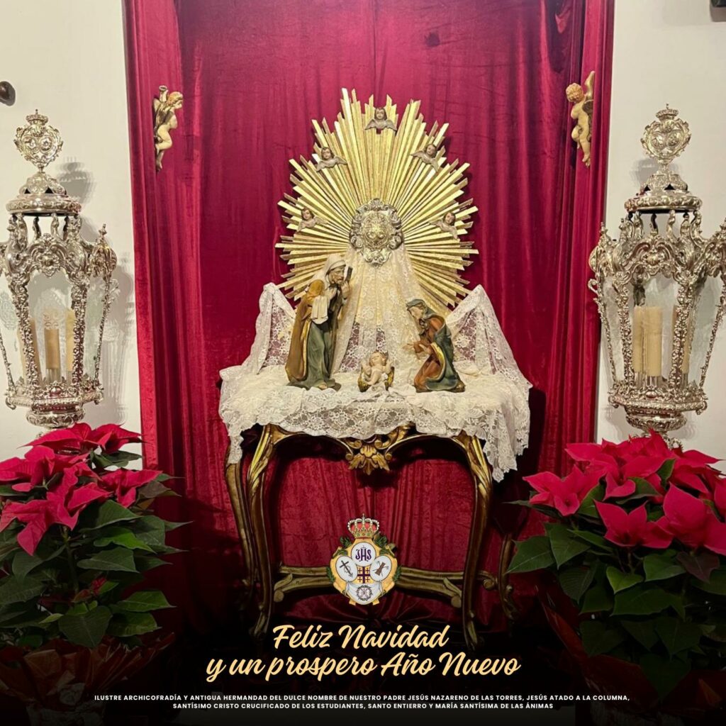 Y así sucederá en los próximos días. Desde la Ilustre Archicofradía y antigua Hermandad del Dulce Nombre de Nuestro Padre Jesús Nazareno de las Torres, Jesús Atado a la Columna, Santísimo Cristo Crucificado de los Estudiantes, Santo Entierro y María Santísima de las Ánimas, os deseamos una FELIZ NAVIDAD y PRÓSPERO 2026.