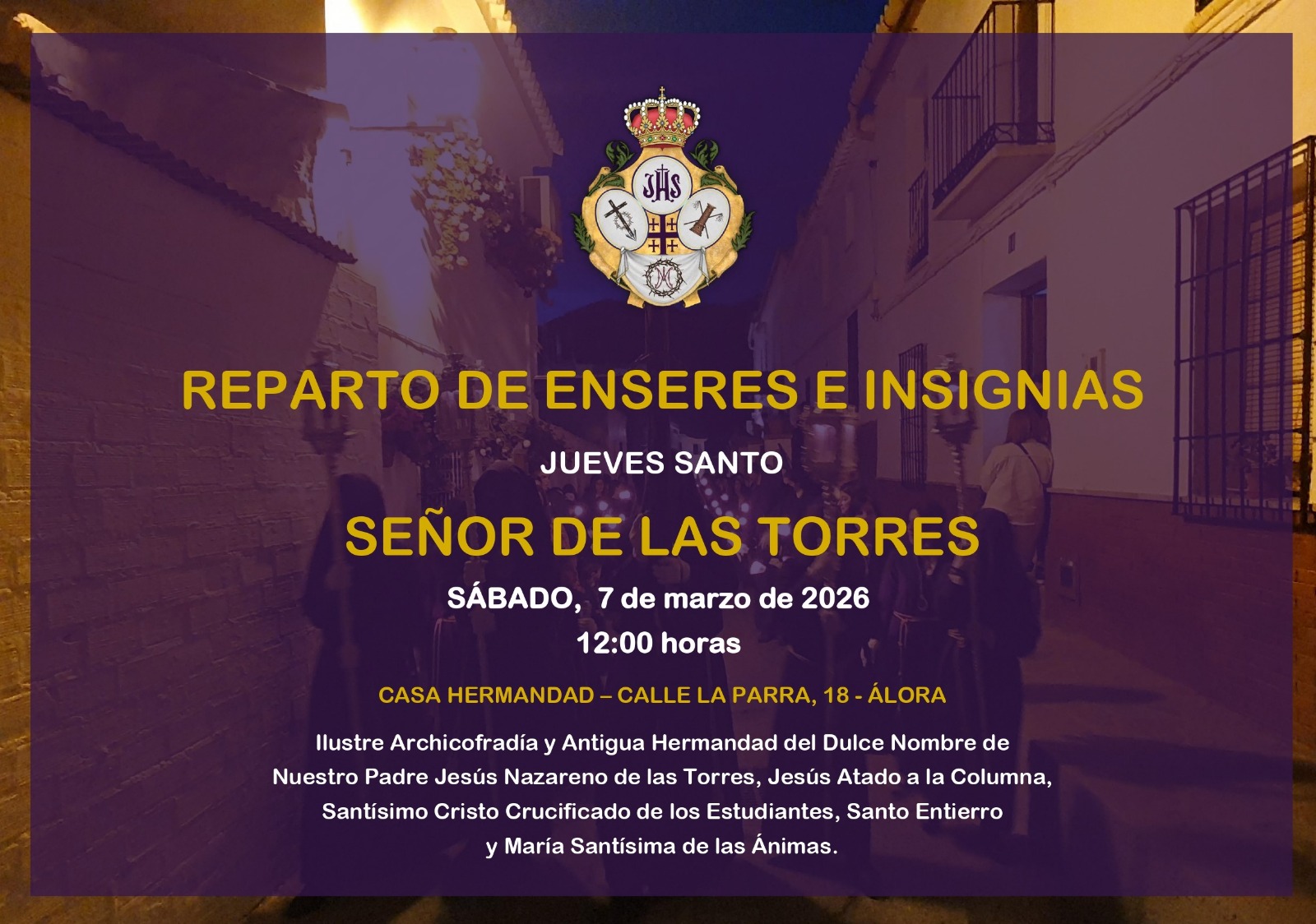 Desde hoy queda abierto el plazo de PREINSCRIPCIÓN para todos aquellos/as Hermanos y Hermanas que deseen participar en la Estación de Penitencia del Jueves Santo 2026, acompañando en procesión a Nuestro Padre Jesús Nazareno de las Torres.