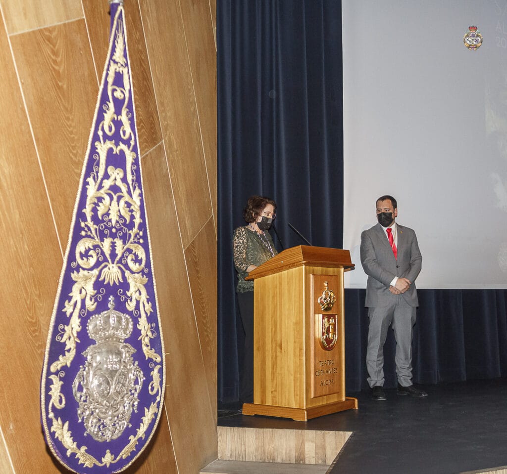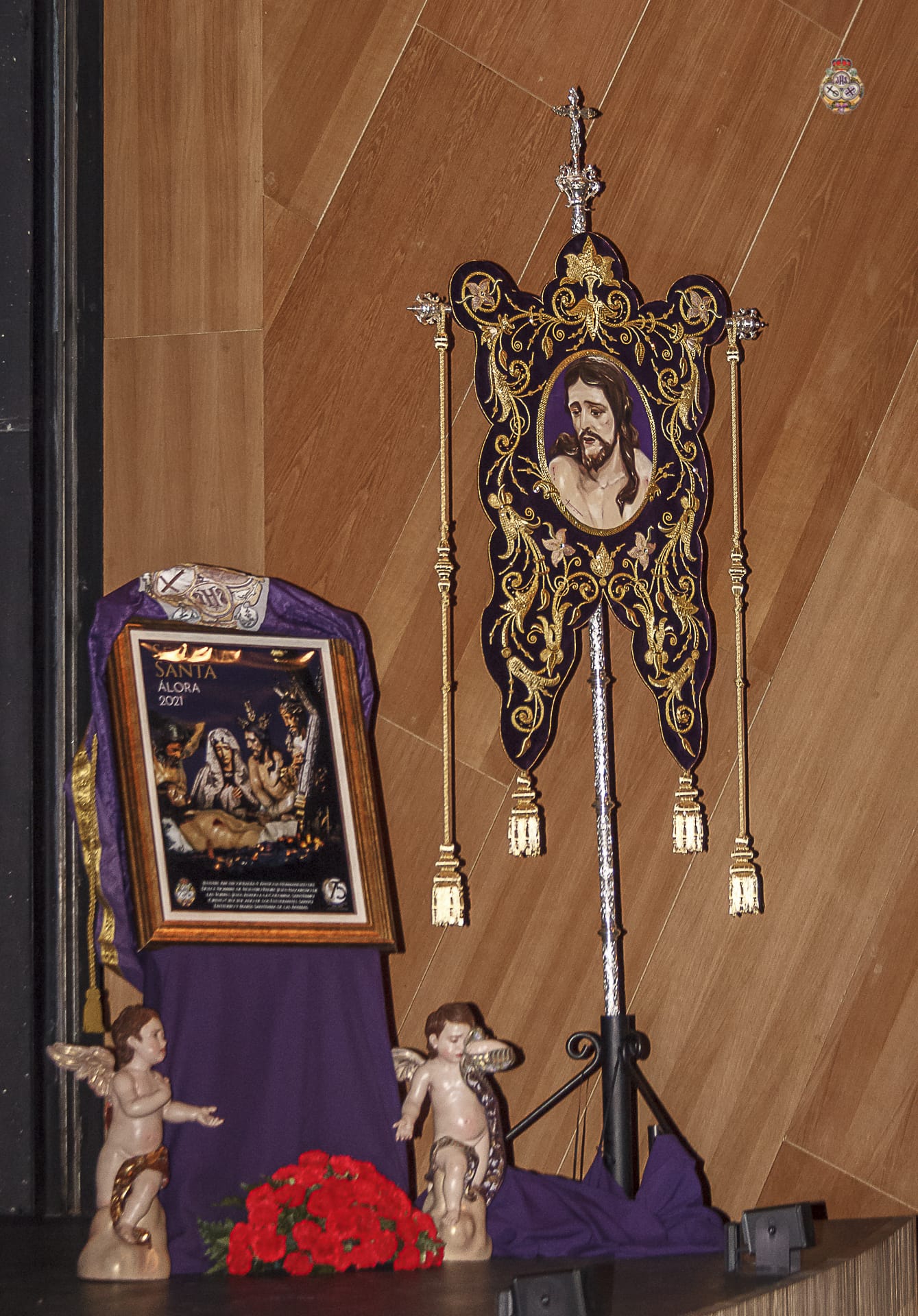 A causa de la actual pandemia, el pasado año tenían prevista la presentación de los estandartes de las secciones de Jesús Atado a la Columna y Santo Entierro. Este año, si ha sido posible que un proyecto que tanto empeño e ilusión había puesto la sección viese la luz y que esperamos que muy pronto puedan procesionarse por las calles de nuestro pueblo. Nuestro Hermano Mayor, Juan Andrés González, hizo su presentación, para que Juan Antonio Ruiz Martínez, subiese al escenario para descubrir dicho estandarte, ante la atenta mirada de los presentes en el patio de butacas.