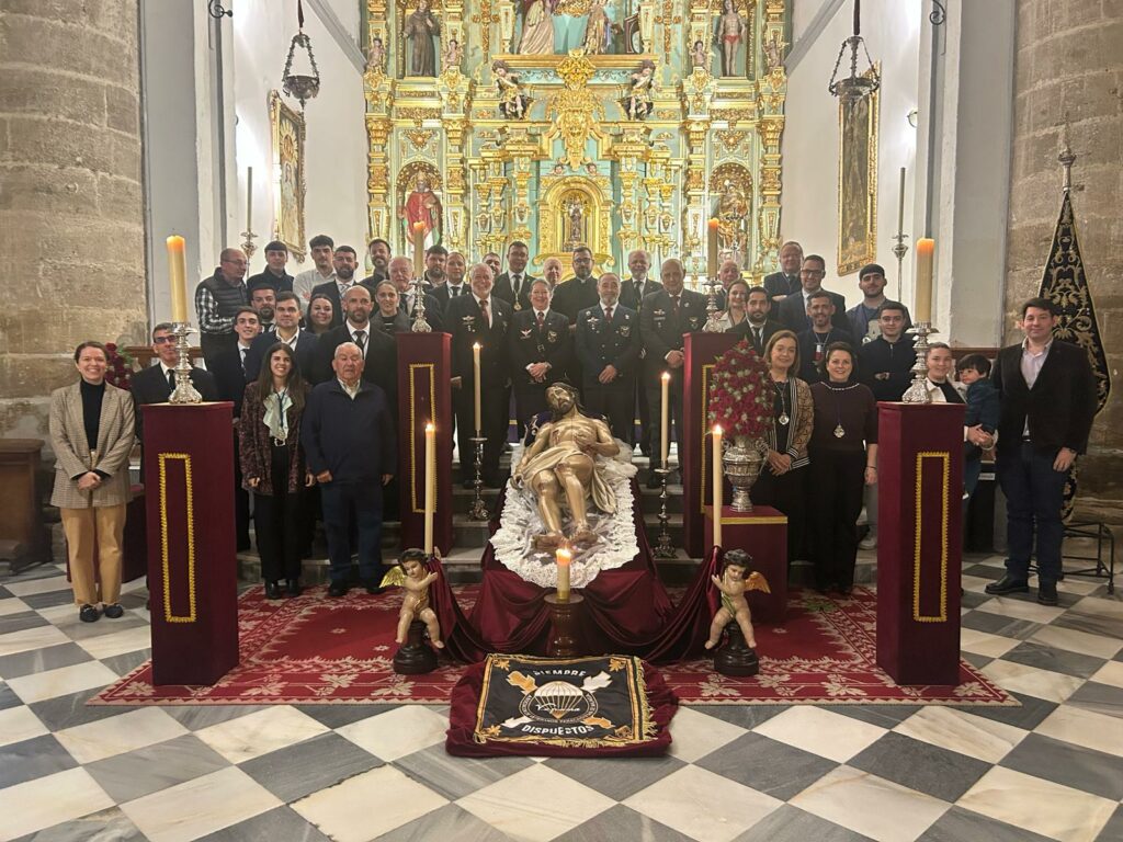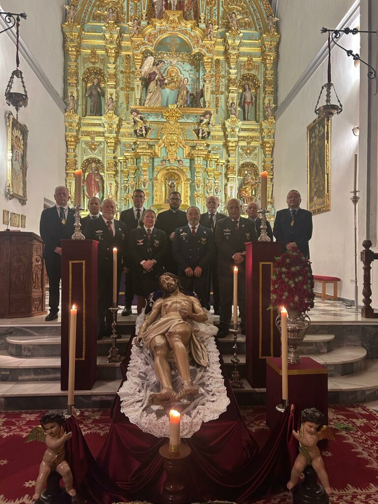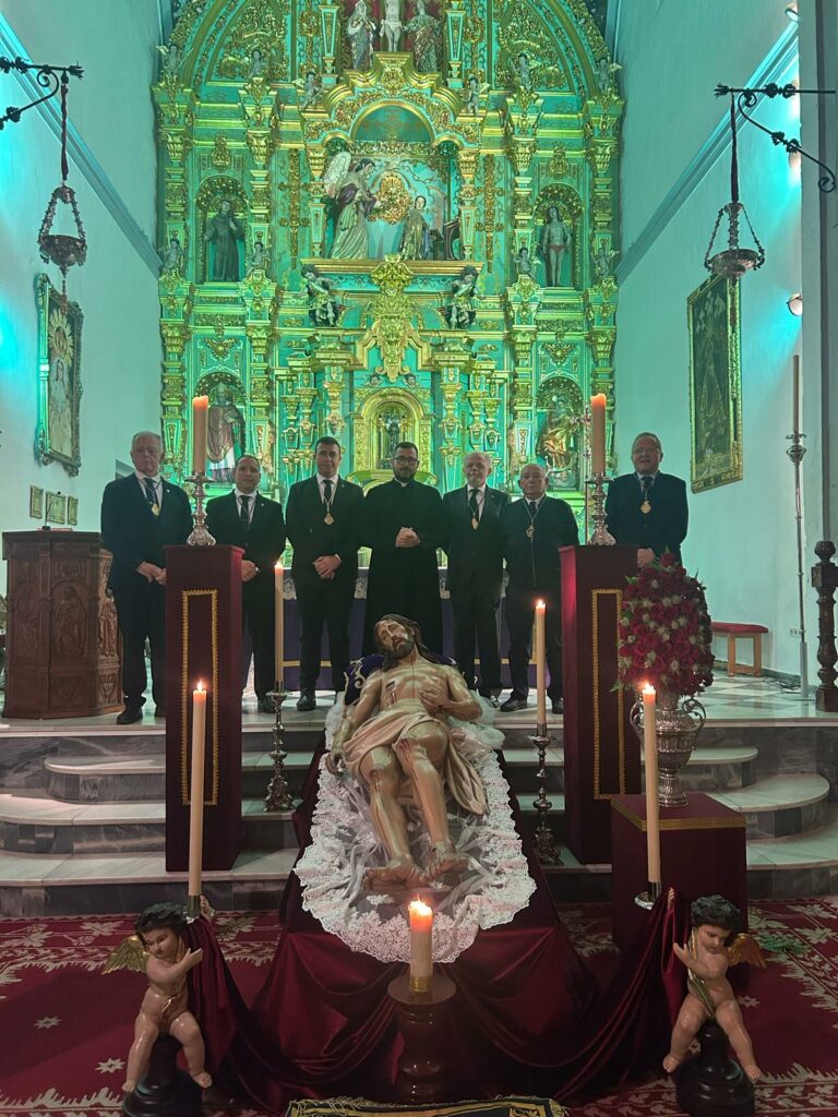 El culto estuvo centrado en el ejercicio de las Cinco Llagas, una práctica devocional profundamente arraigada en la tradición de la Iglesia y que invita a los fieles a meditar sobre las heridas que Jesucristo recibió durante su crucifixión. La Santa Misa fue presidida por nuestro Párroco y Director Espiritual don Felipe Manuel Gallego Casco, quien acompañó espiritualmente a los presentes en este momento de reflexión y oración. Además, estuvo debidamente representada VEPAMA, los cuales son padrinos de nuestra Sagrada imagen desde su bendición.