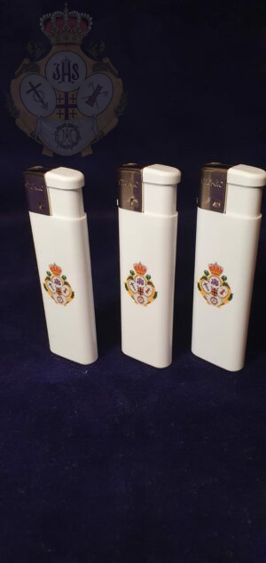 Mechero con escudo de la Archicofradía. Tamaño 8 x 2 x 1 cm