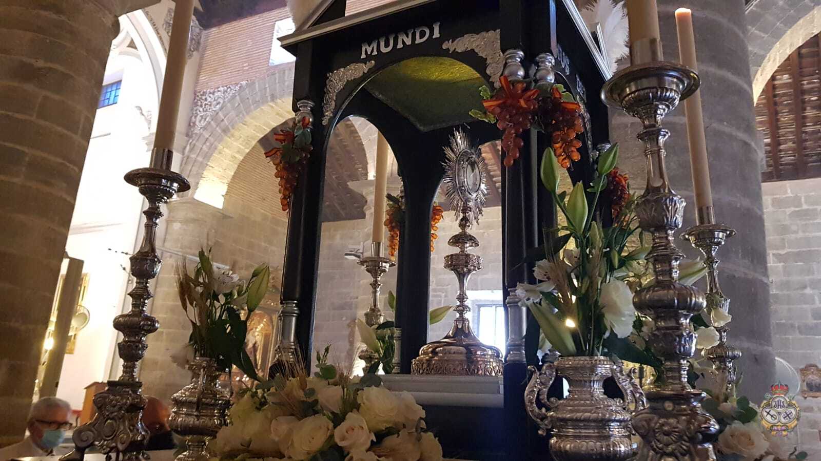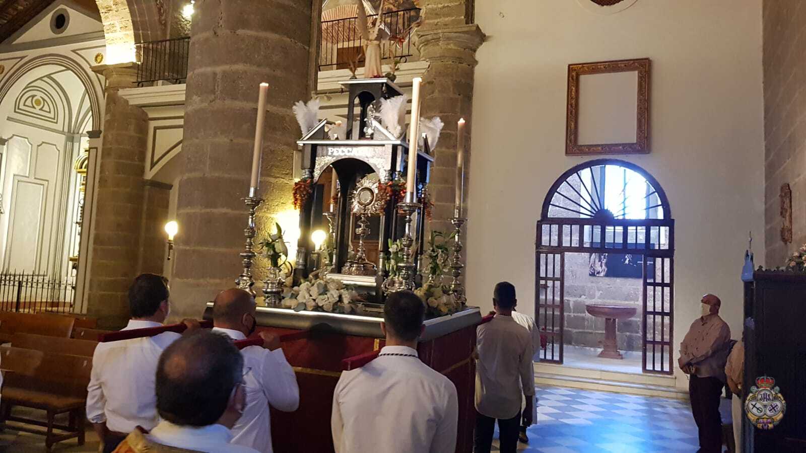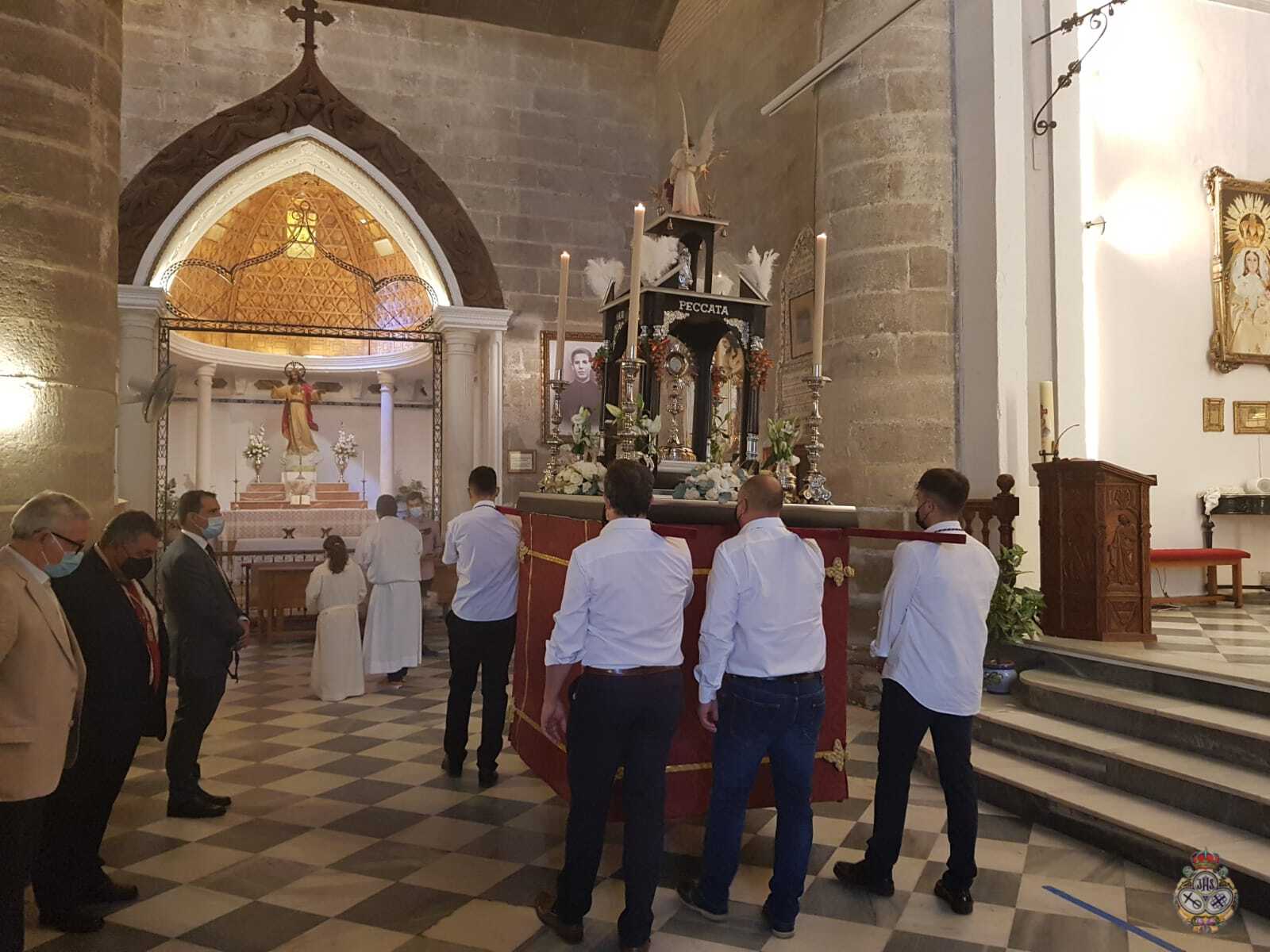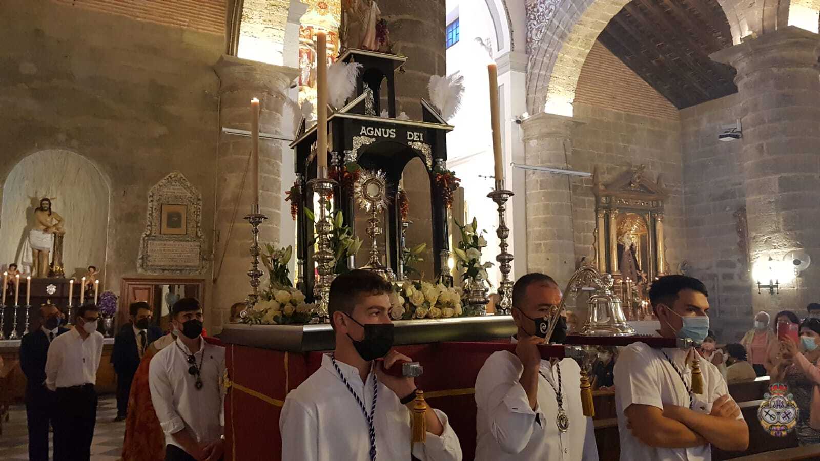 Tras la Solemne Eucaristía celebrada en la Parroquia de Nuestra Señora de la Encarnación, se ha procedido a la Procesión Claustral del Santísimo Sacramento del Altar en el interior del Templo, cumpliendo con todas las medidas seguridad a causa del Covid-19. Pero estas medidas, no han impedido que un buen números de fieles hayan asistido al Día del Cuerpo y la Sangre de Cristo.