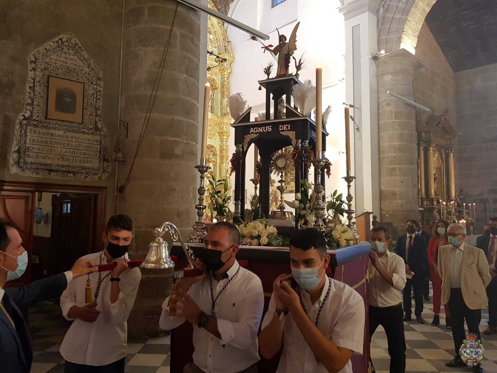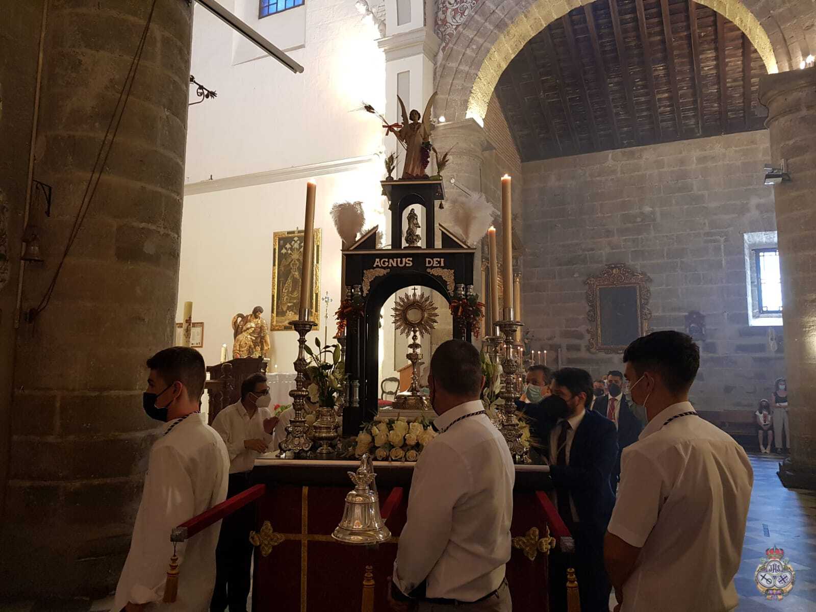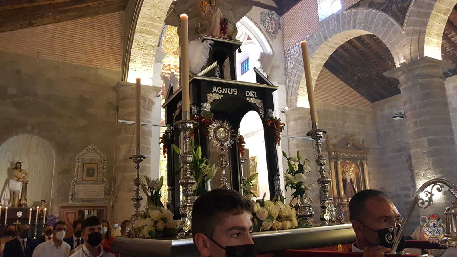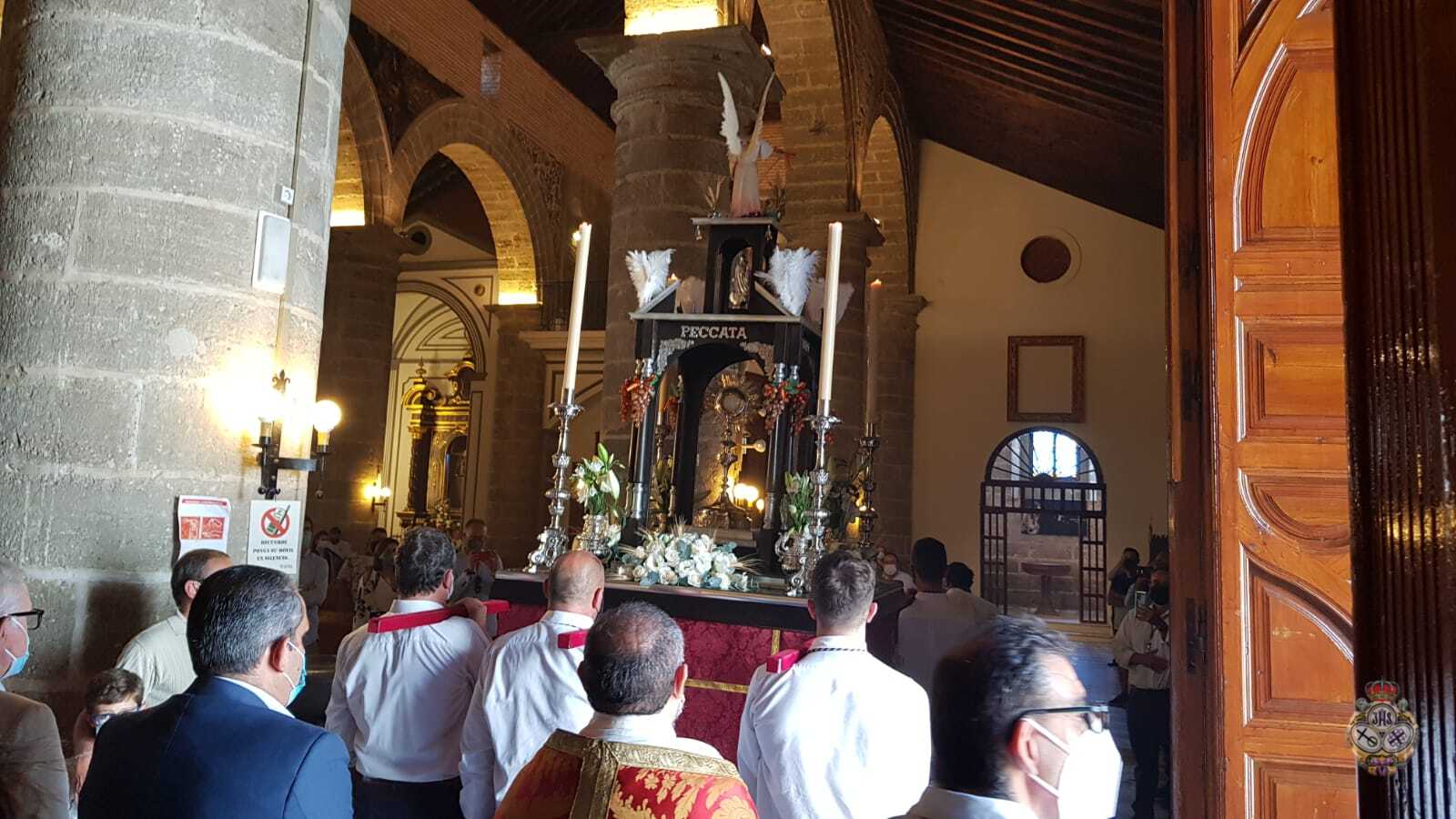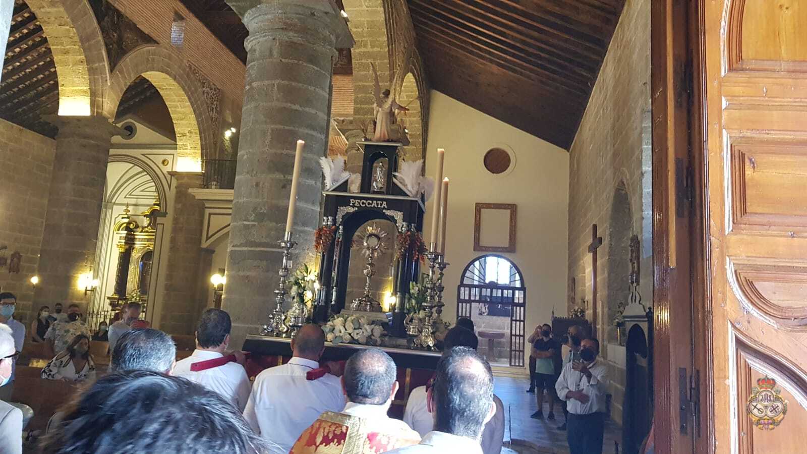 Tras la Solemne Eucaristía celebrada en la Parroquia de Nuestra Señora de la Encarnación, se ha procedido a la Procesión Claustral del Santísimo Sacramento del Altar en el interior del Templo, cumpliendo con todas las medidas seguridad a causa del Covid-19. Pero estas medidas, no han impedido que un buen números de fieles hayan asistido al Día del Cuerpo y la Sangre de Cristo.