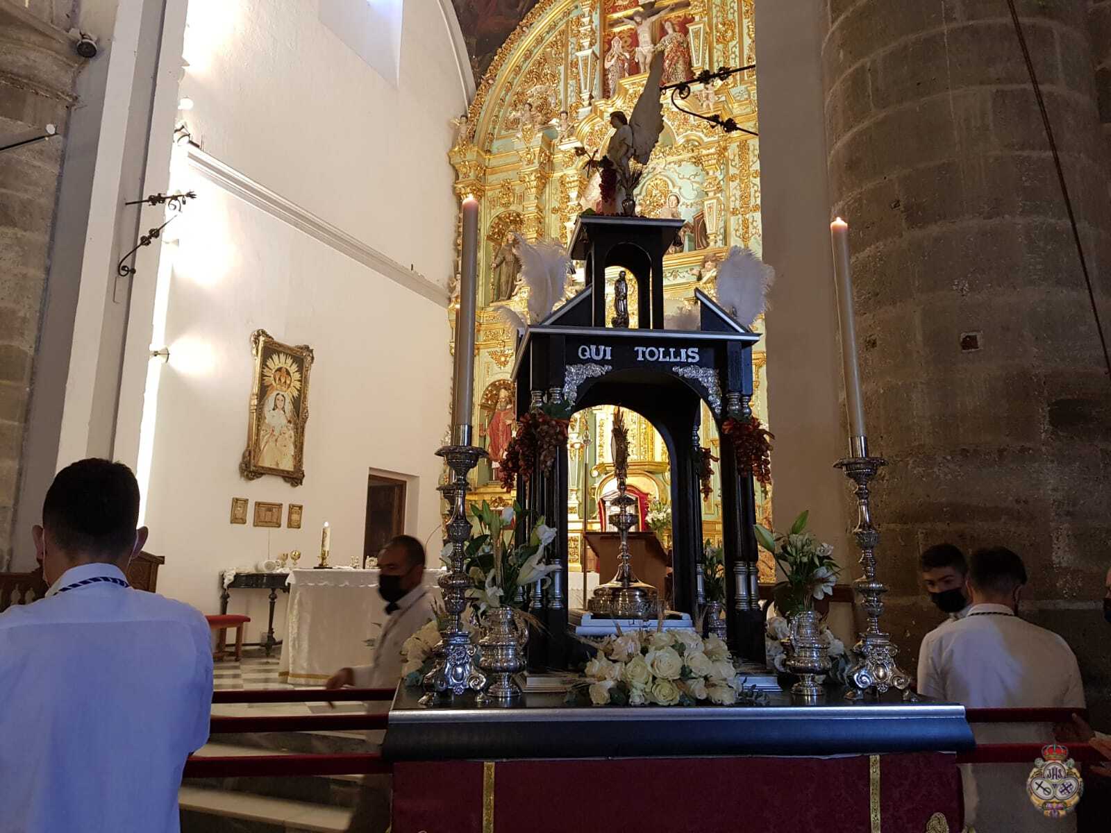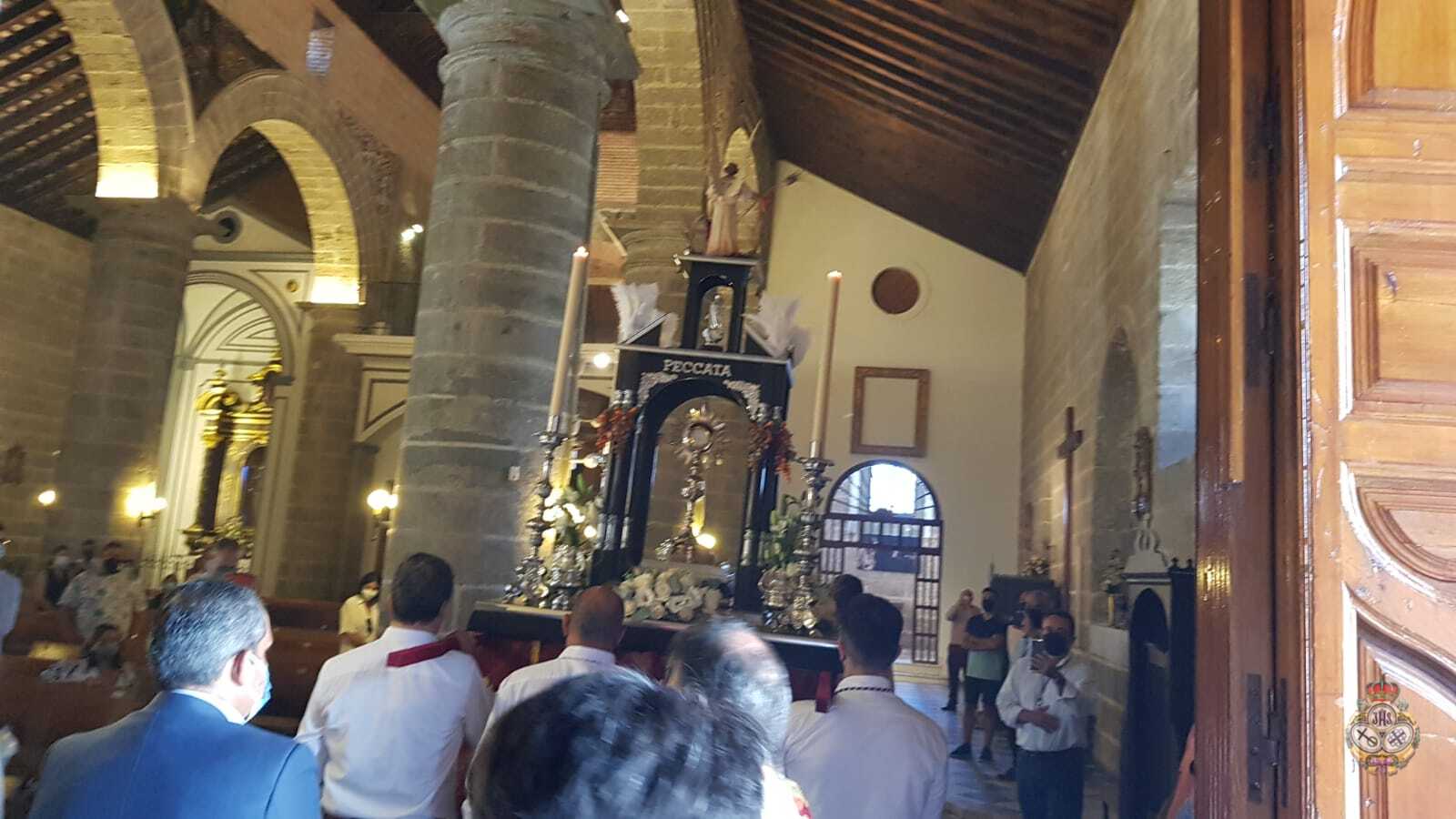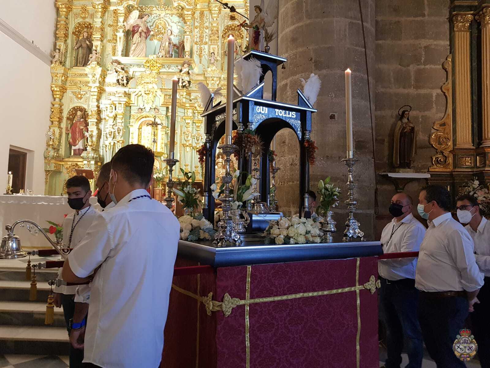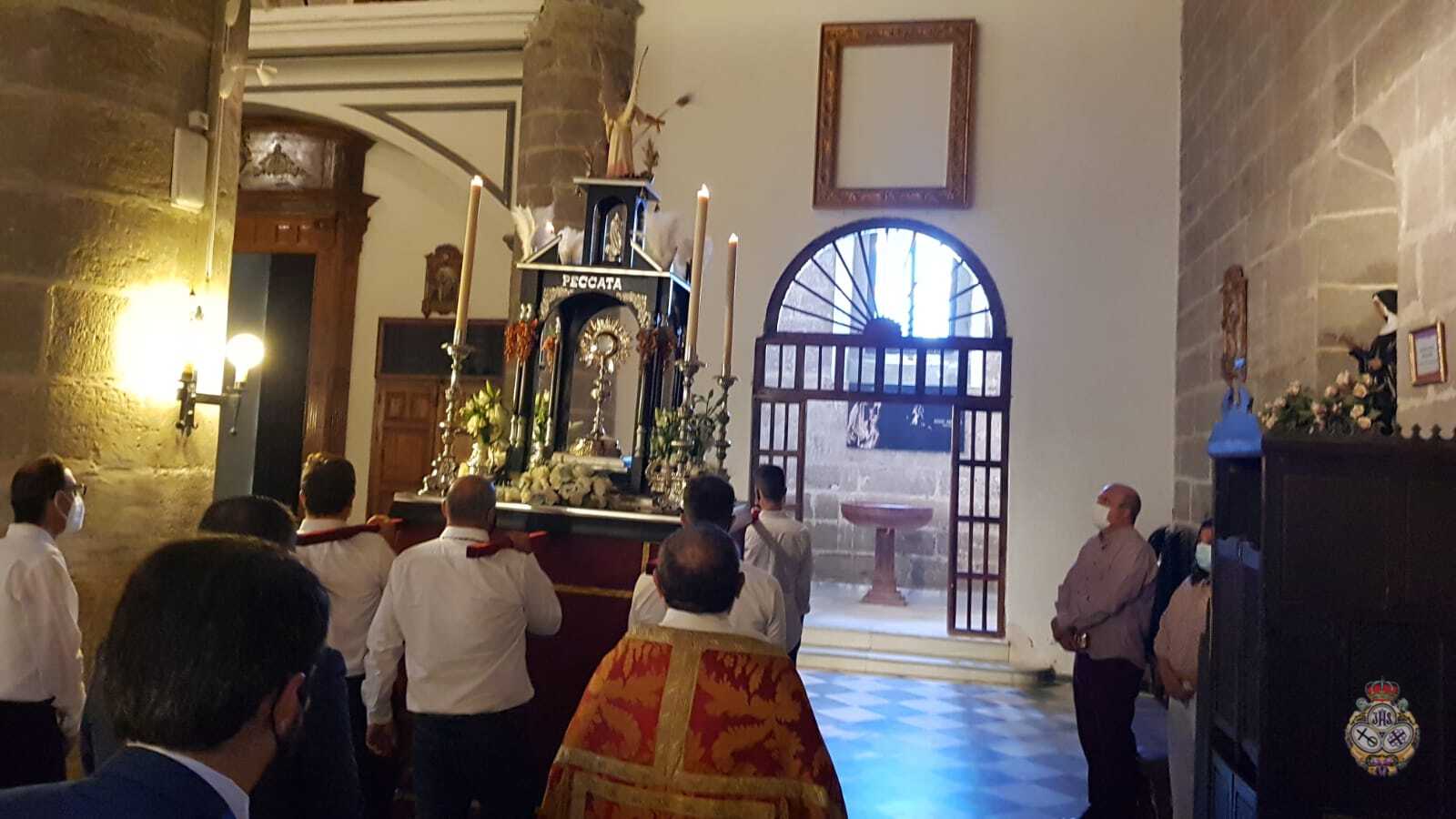 Tras la Solemne Eucaristía celebrada en la Parroquia de Nuestra Señora de la Encarnación, se ha procedido a la Procesión Claustral del Santísimo Sacramento del Altar en el interior del Templo, cumpliendo con todas las medidas seguridad a causa del Covid-19. Pero estas medidas, no han impedido que un buen números de fieles hayan asistido al Día del Cuerpo y la Sangre de Cristo.